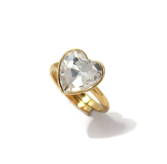 Anillo Corazon Blanco Maxi Dorado