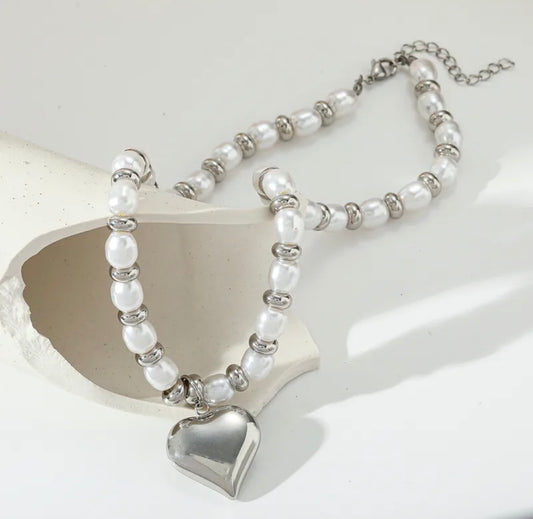 AgotadoCollar Corazón Blanco y Plateado