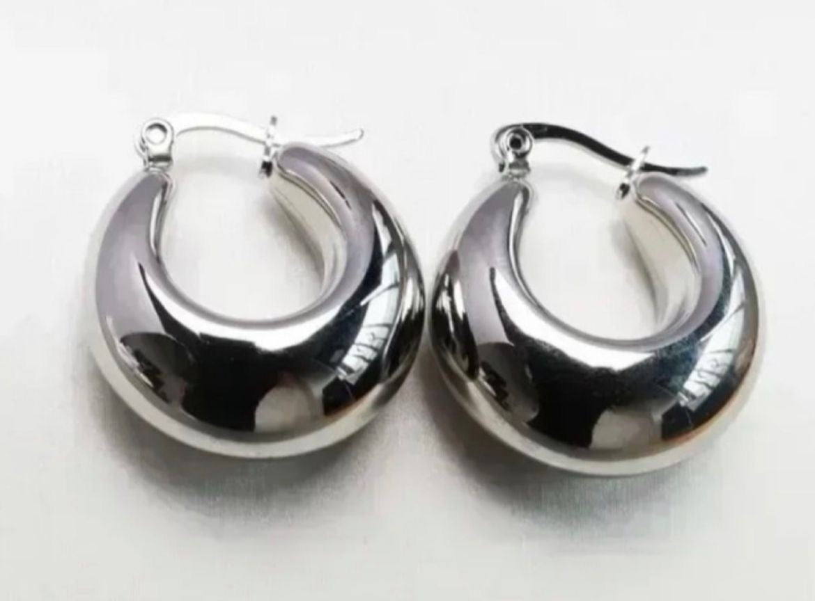 Arracadas plateadas de aro de acero