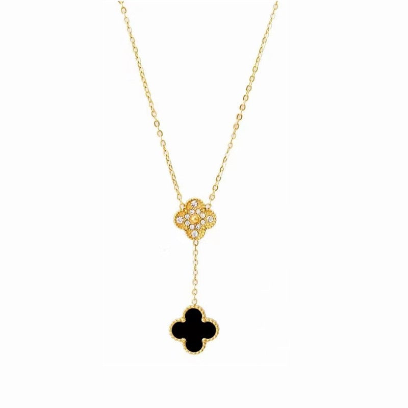 Collar de trébol negro doble con doble vista