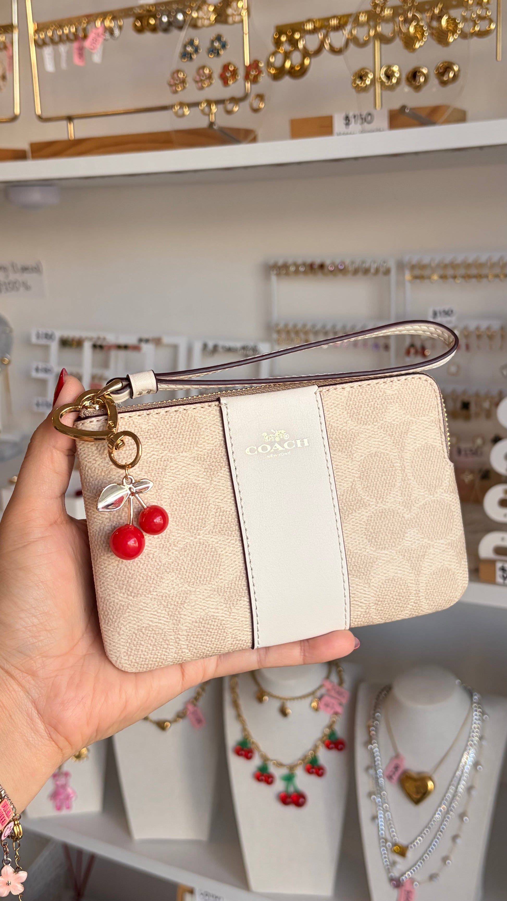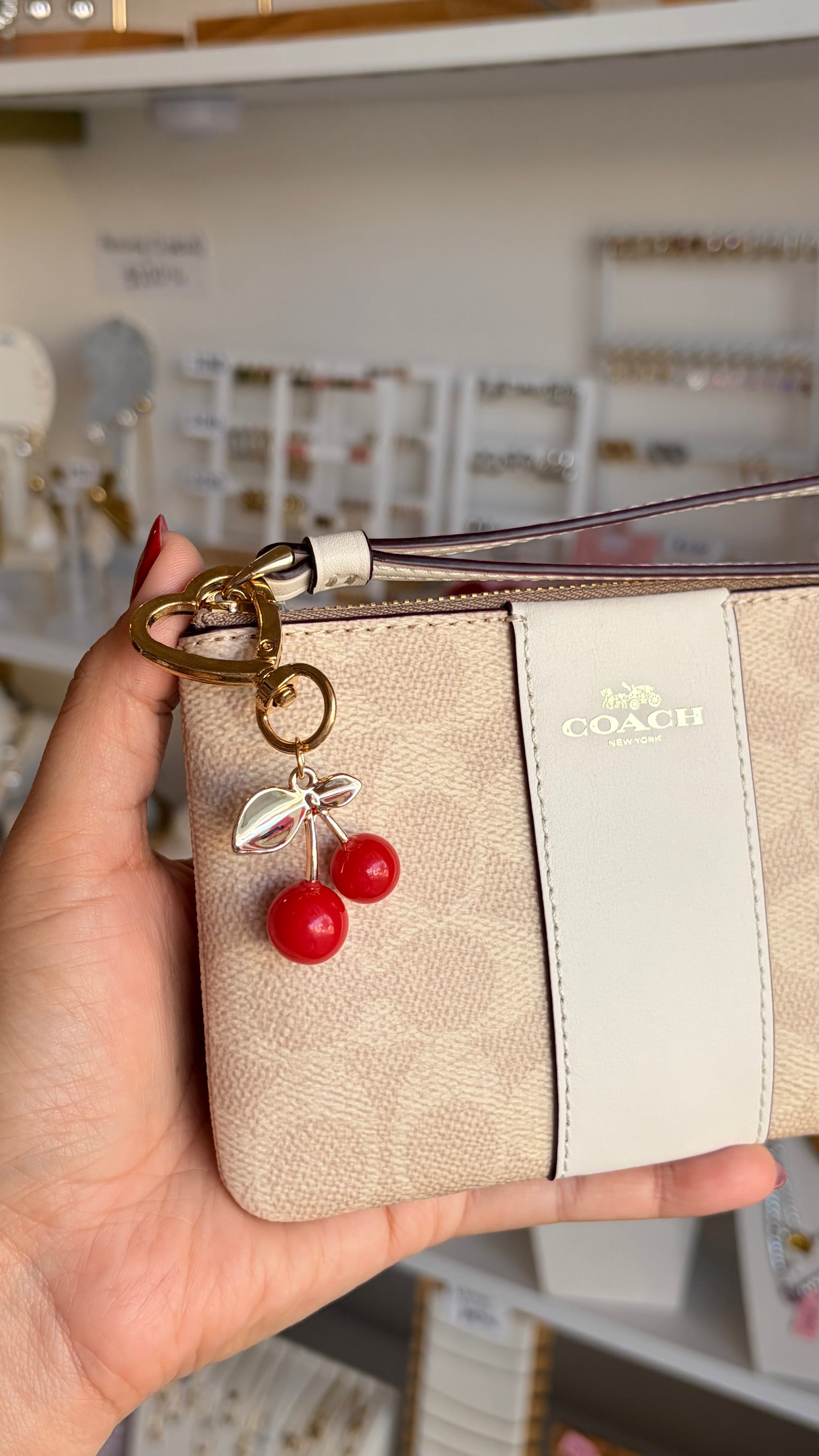 Llavero mini cerezas dorado